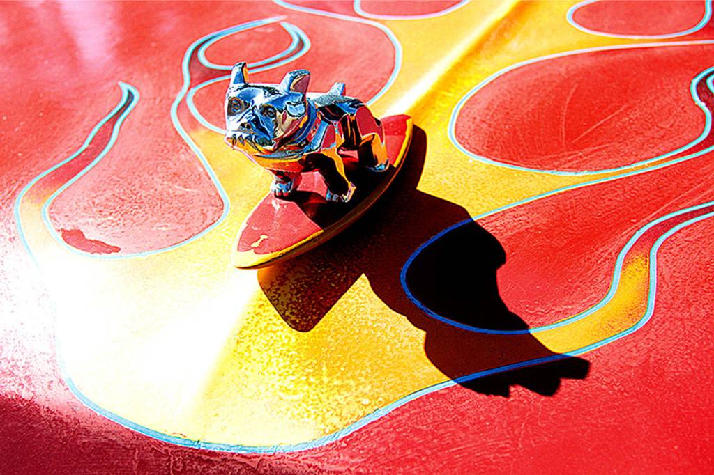 A surfing bulldog graces the hood of a custom truck at Monday’s Bainbridge Island Classic Car Cruise-In.