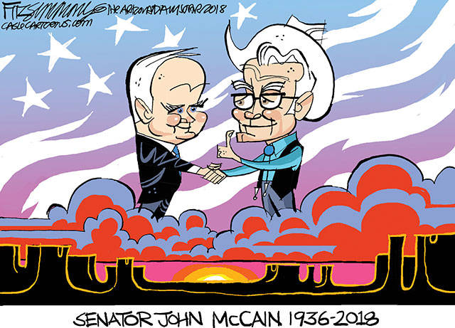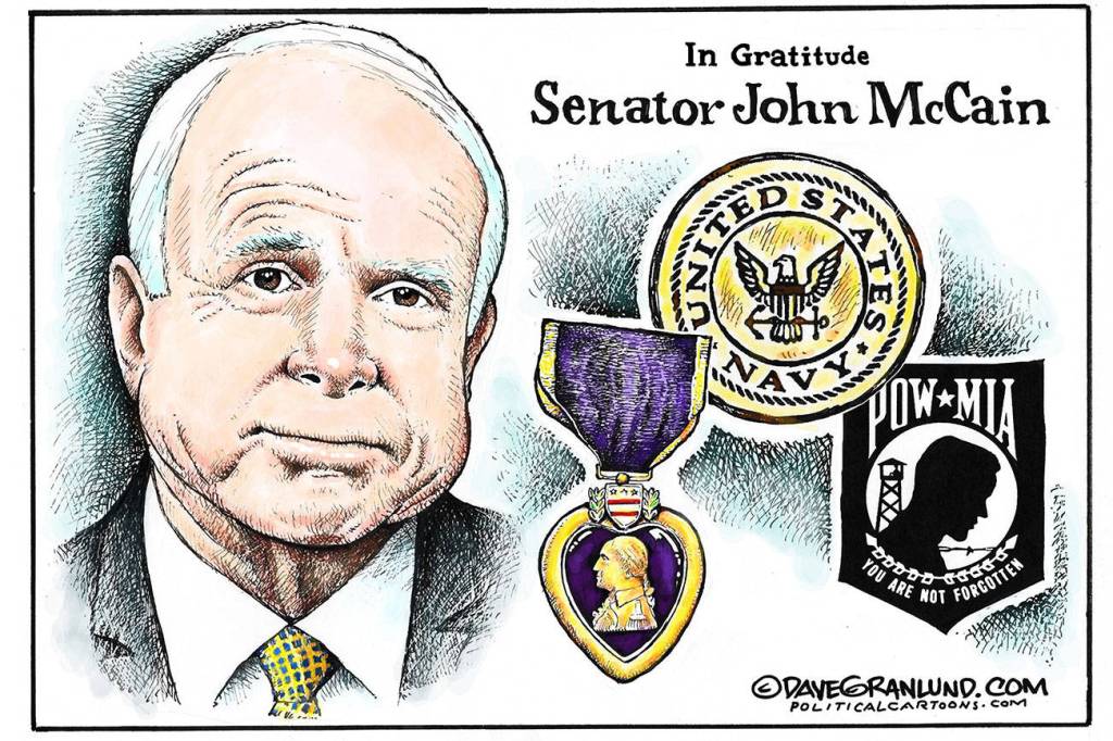 Newspaper cartoonists from across the country penned tributes to U.S. Senator John McCain following his death Saturday at the age of 81.