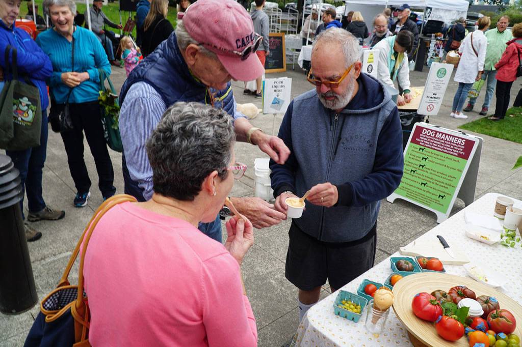 Anthony and Christine Farrell and Bob Ross were the judges of the 2018 Tomato Taste Off at the Bainbridge Island Farmers Market Saturday, Aug. 25.