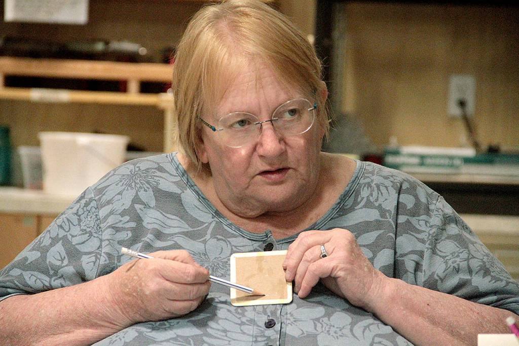 MJ Linford leads a class Thursday at BARN devoted to the Jacob’s Ladder bookbinding style.