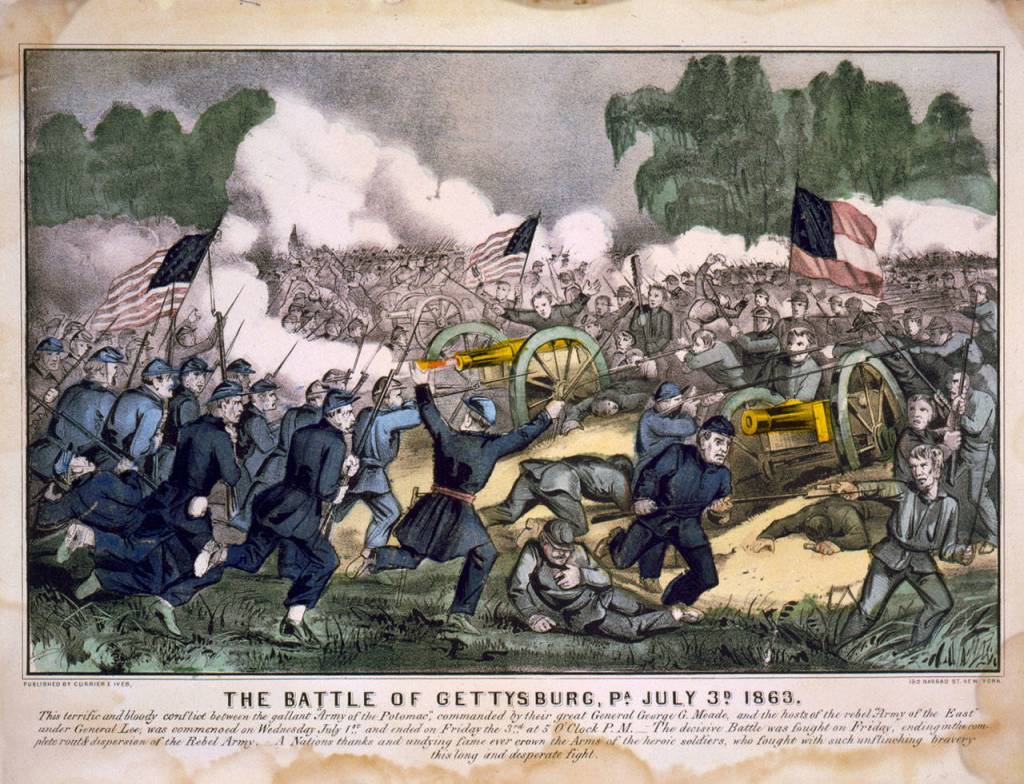 The Civil War battle of Gettysburg took place over three hot summer days — July 1 to July 3, 1863 — around the small market town of Gettysburg, Pennsylvania. It began as a skirmish when the Confederate Army of Northern Virginia collided with the Union Army of the Potomac.