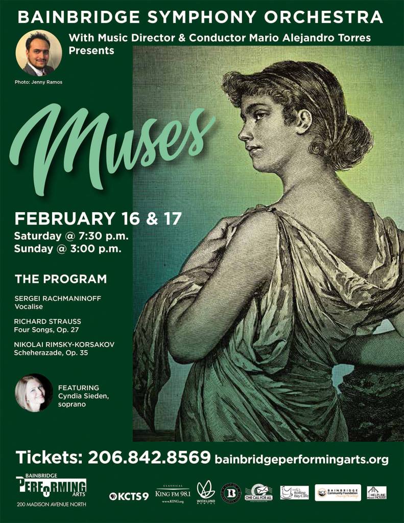 Two special guests and an ending like no other will highlight the Bainbridge Symphony Orchestra’s latest production: “Muses,” on stage at Bainbridge Performing Arts at 7:30 p.m. Saturday, Feb. 16 and 3 p.m. Sunday, Feb. 17.