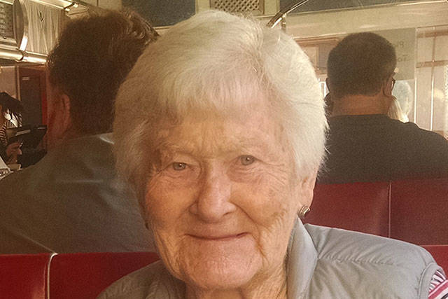 Edna Ruth Ernsdorff, age 95, beloved wife, mother, sister, aunt, grandmother, neighbor, and bridge player, peacefully left this world for heaven on Friday, March 22, 2019. She had been at home on Bainbridge Island in the care of her family for the last two weeks after trying her darnedest to recover from a fall, and then from surgery, and finally, pneumonia. She was one tough gal but the triple whammy was just too much. Born in Tripp County, South Dakota on September 14, 1923, she was the daughter of James and Martha (Emme) Edwards. We sure will miss her.