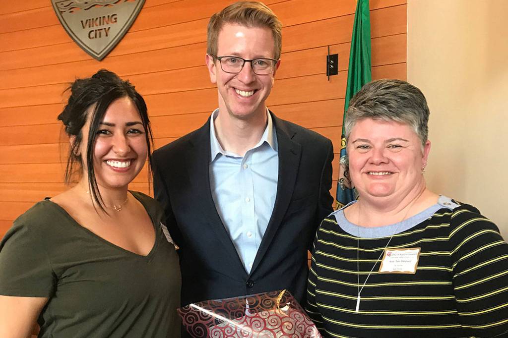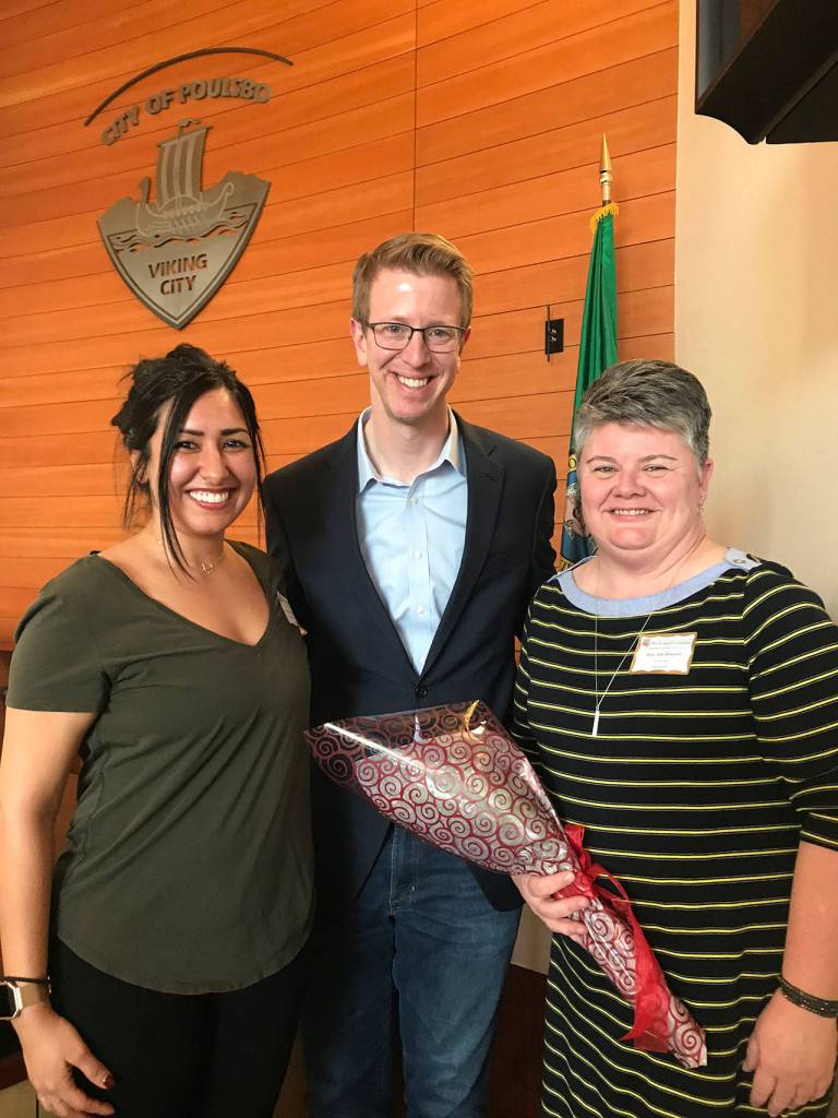 Congressman Derek Kilmer handed out the awards in the large council room at Poulsbo City Hall in front of a standing-room-only crowd.