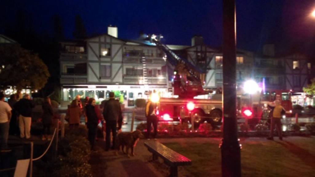 Flames were no longer visible from the structure from Winslow Way just after 8:30 p.m.