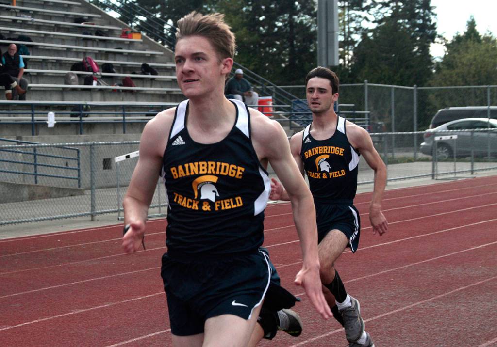 Both the boys and girls teams of the Bainbridge High School track-and-field squad managed impressive finishes at the three-school home turf meet on Wednesday, April 17.