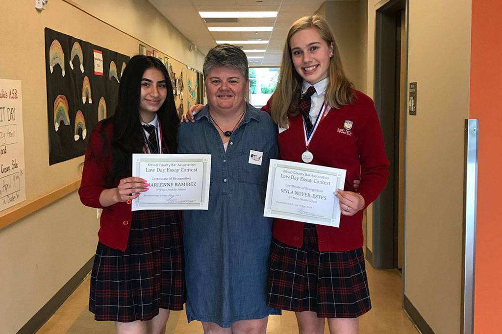 Both Marlenne and Myla attended the Law Day Ceremony at the Kitsap Board of Commissioner Chambers on May, along with Saint Cecilia Catholic School teacher Amy Lee-Despard, to receive their awards.