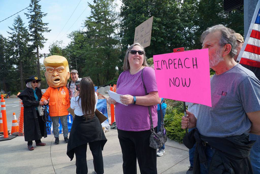 About 15 demonstrators gathered at the Winslow Way and Highway 305 intersection Wednesday calling for Congress to begin impeachment proceedings against President Donald Trump.
