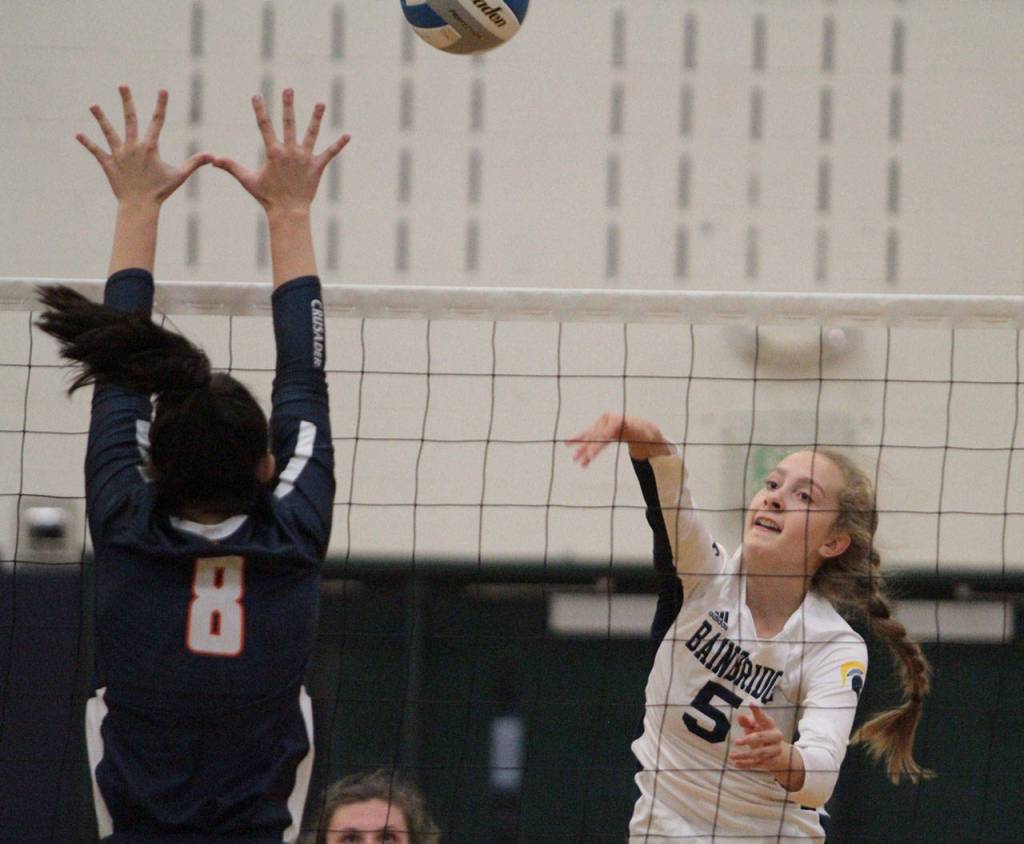 Also coming up big for Bainbridge was Julia Jakubik (five kills, six digs, two blocks, two aces) and Rebecca Roman (seven assists, six digs, five kills, one block).