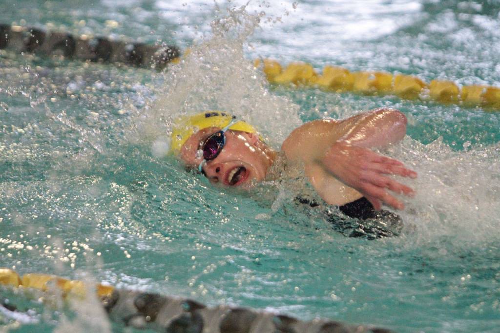 Michael was first in the 500-yard freestyle for Bainbridge; she touched the wall at 5:35.43.