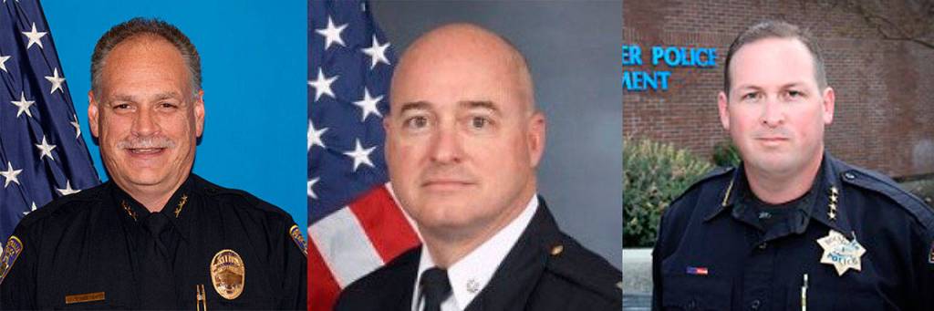 The three finalists for the Bainbridge Island police chief position: Carl Nielsen, Joseph “Joe” Clark, and David “Dave” Westrick.