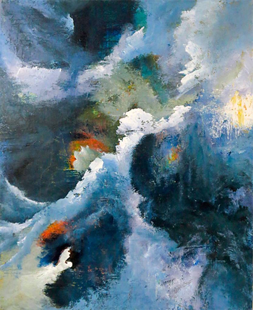 “Though some of my paintings are more realistic than others, I’ve noticed that no matter where I start on the canvas almost all of them seem to evolve either into clouds and rain or boats and water — probably not surprising, given that I’ve lived on various islands in the Pacific Northwest for the last 25 years or so.”