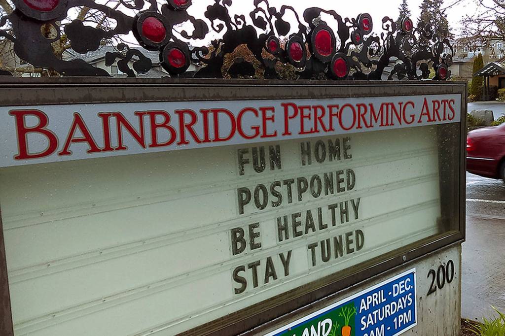 Actors at Bainbridge Performing Arts won’t be belting out the first lines to “It All Comes Back” during Friday’s performance of “Fun Home,” now postponed indefinitely. The bus at the Bainbridge Island Senior Center will stay parked, with travel trips put on hold. Members of the Battle Point Astronomical Association won’t be looking up for “Galaxy Collisions and the Milky Way”; instead, they’re looking out for health concerns and the planetarium show has been canceled.