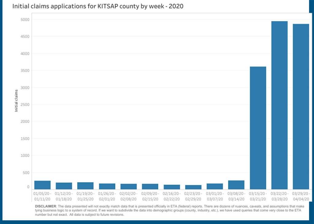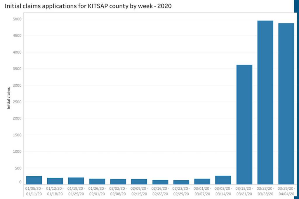 In Kitsap County, the state received 4,860 initial claims during the week of March 29-April 4.