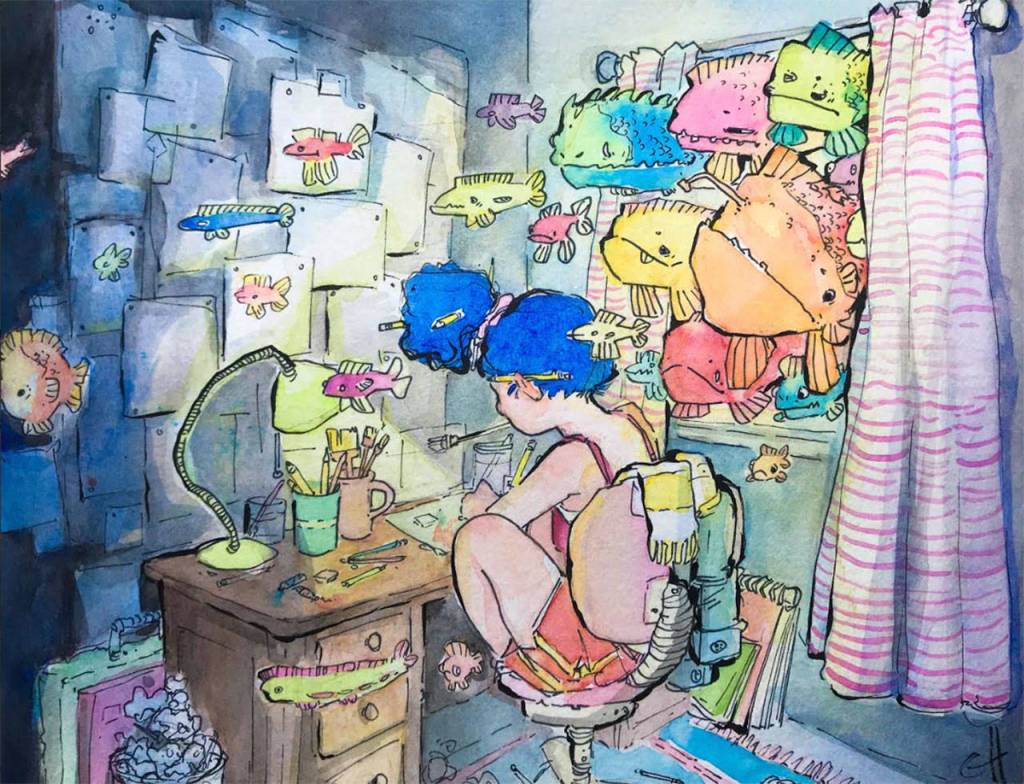The whimsical ink-and-watercolor works of Grace Hattrup recently earned her the grand prize for this year’s Bainbridge Island Studio Tour Youth Art Award.