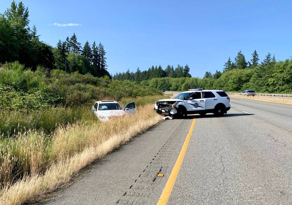 The trooper, who has been with WSP for five years, sustained minor injuries and was transported to Harrison Medical Center in Bremerton where she was treated and released. There was also another minor injury collision earlier as a result of the wrong-way vehicle near the State Route 308 interchange as drivers tried to get out of the way.
