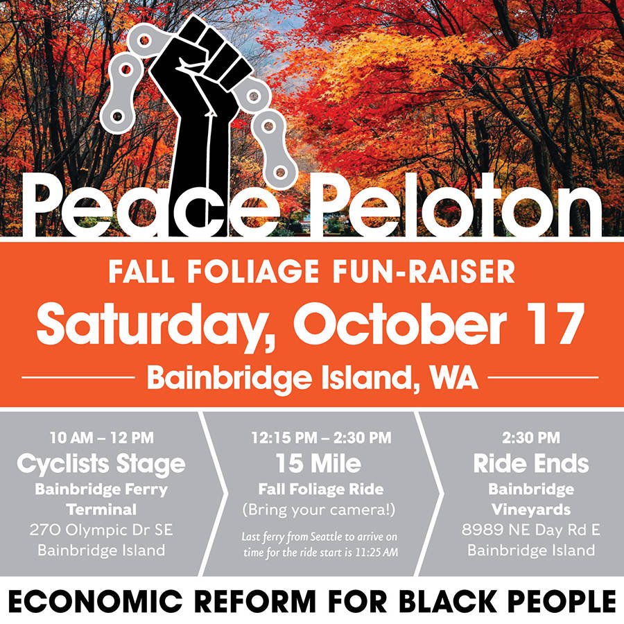 Many of his friends are cyclists, so on June 6 he started these Peace Peloton bike rides to raise awareness of Economic Reform for Black People. The one this weekend starting with staging from 10 a.m. to noon at the Bainbridge Island ferry dock is already his 11th event.