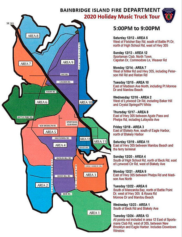 A longstanding tradition of over five decades on Bainbridge Island will be modified this year due to COVID-19 as the fire department’s annual Holiday Music Truck Tour forges on to thank the community during a tough year for so many.