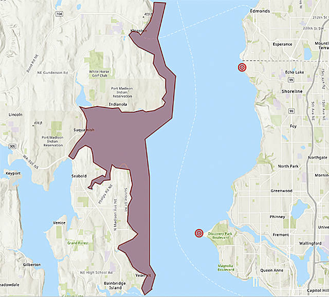 The King County overflow advisory from the Discovery Park area of Seattle and also near Shoreline is in effect until Jan. 19. A shellfish harvesting closure is in effect through Feb. 2. It includes the eastern shoreline of BI from Wing Point to Agate Point. It also extends from Agate Pass Bridge to Apple Cove Point to Kingston.