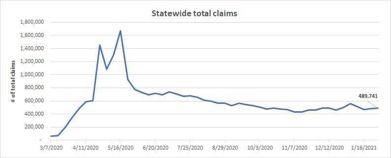 Unemployment claims were up in the final week of January, but initial claims were down in the latest numbers released by the Employment Security Department.