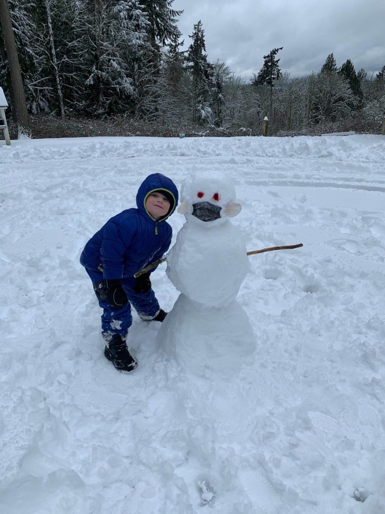 Bainbridge Island finally got its winter snow this week, but it only lasted a few days. Rebecca Barker said her family moved here two years ago from Canada and got a “little slice of home” with the snow as Michael, 6, built a snowman, complete with the COVID-19 safety mask of course. Meanwhile, Jim Beyea dug up this photo of the ferry in Bainbridge Island pulling out of the dock with the Olympics in the background. The National Weather Service issued a winter storm warning for the Bainbridge Island area Saturday. Last Thursday, city Operations Maintenance crews began working 12-hour shifts to provide 24-hour coverage. The city followed its Snow and Ice Control Plan that includes priority streets for response; crews focus first on main roads then neighborhood streets. The city is not operating the Severe Weather Shelter on Bainbridge Island this year due to COVID-19. But the Kitsap County Severe Weather Shelter in Poulsbo has been open at the Gateway Fellowship Church, 18901 8th Ave. Subscribe to shelter activation notifications by texting KITSAPSWS to 898-211.