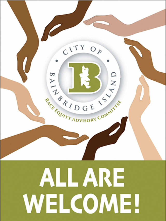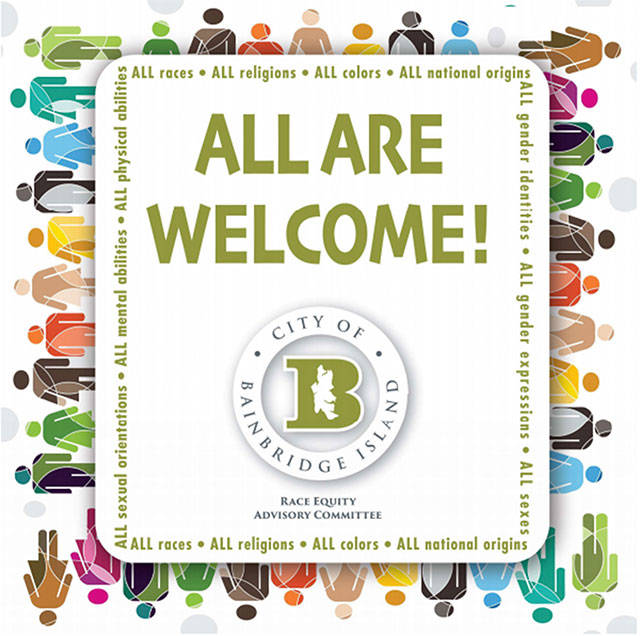 The third sign is 18 inches by 24 inches and reads, “All Are Welcome” with a picture of hands around the city’s logo. That sign will be placed at Lynwood Center, Blakely Harbor and Battle Point Park. Project manager Mark Epstein said sign manufacturing and installation are scheduled to be complete by the second quarter of 2021.