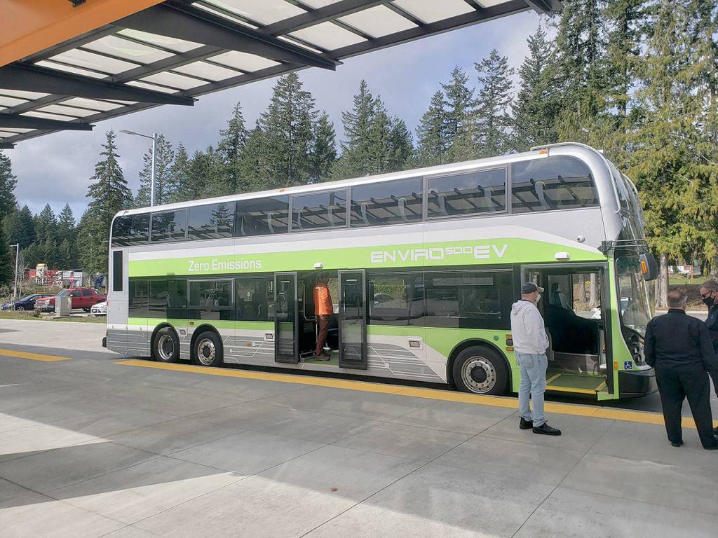 As Kitsap Transit continues to transition to all-electric, the agency recently got a look at a newly designed double-decker electric bus that could serve routes between Bainbridge Island and Poulsbo.
