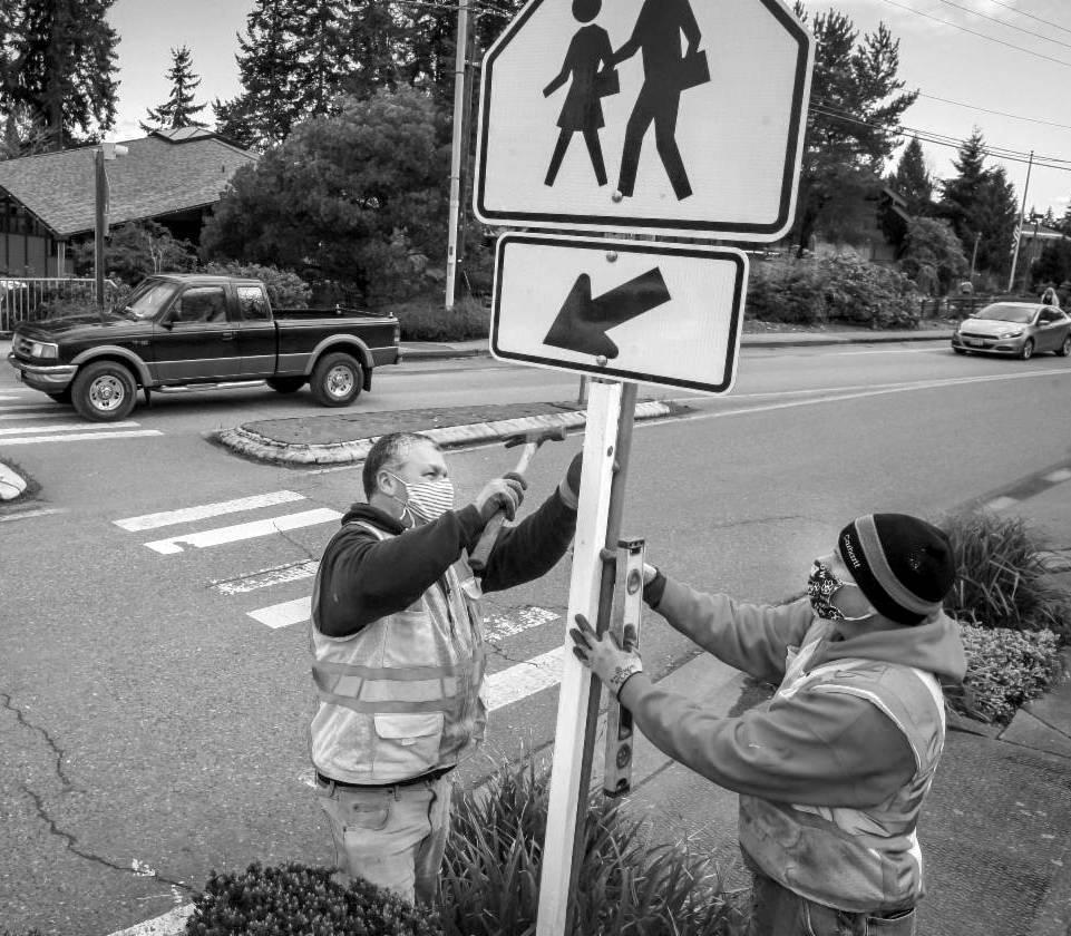 Bainbridge Island is working in school zones to improve safety islandwide with new high-visibility signage and reflective sleeves on sign posts.