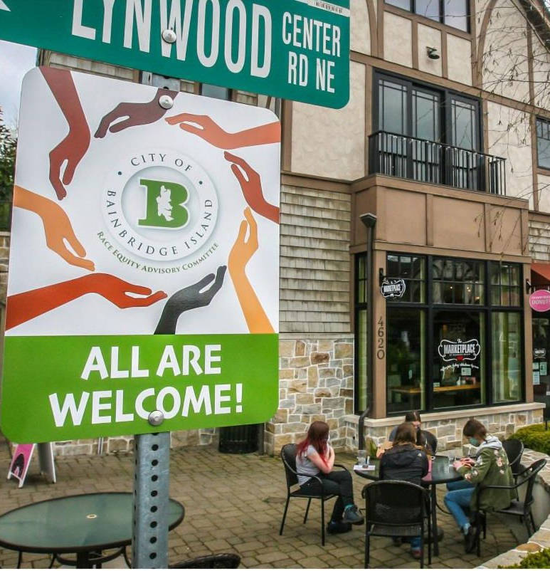 Bainbridge Island staff recently installed 18 signs across the island as part of a race equity awareness project to inform visitors and residents that all are welcome.