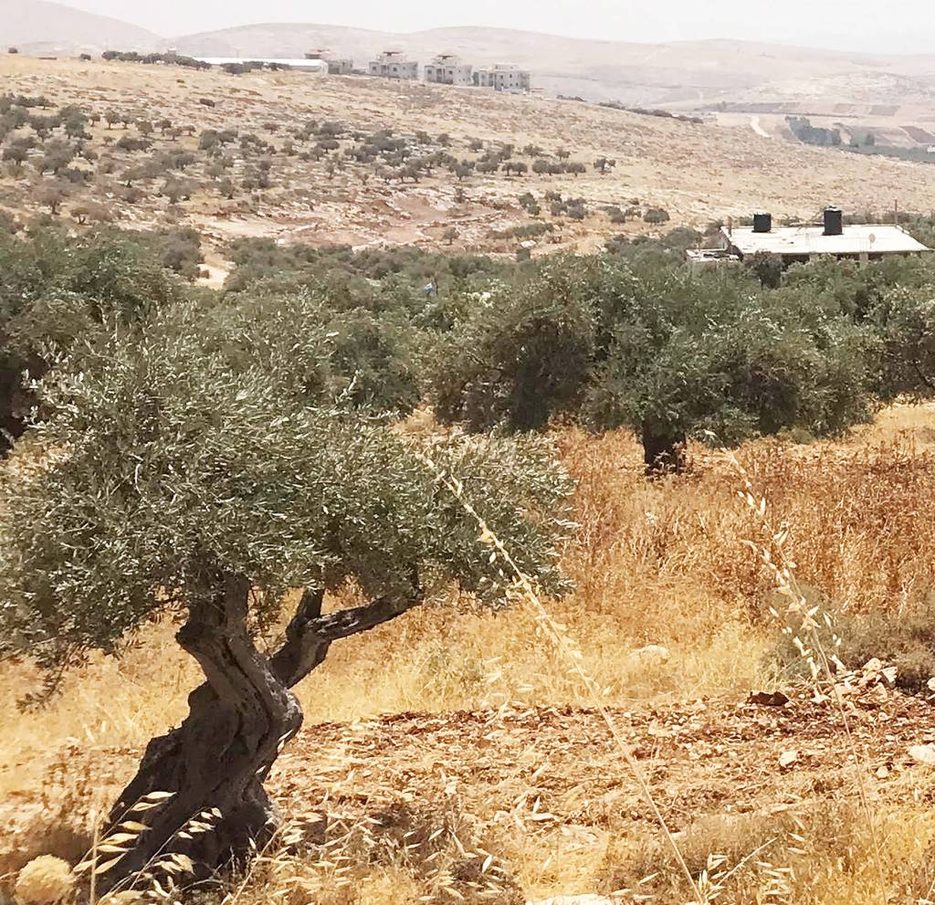 A Palestinian, he was looking out at his longtime family olive farm at where Israelis had taken their land. There was a fence and armed Israelis on the other side.