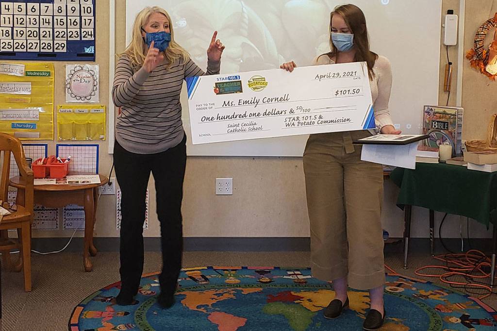 Locally, a teacher at St. Cecilia Catholic School received a welcome surprise last week. While 2nd-grade teacher Emily Cornell was teaching her class, it was disrupted by a STAR 101.5 associate who presented her an award for excellence in teaching as part of the radio station’s Teacher of the Week program, along with a check for $101.50.