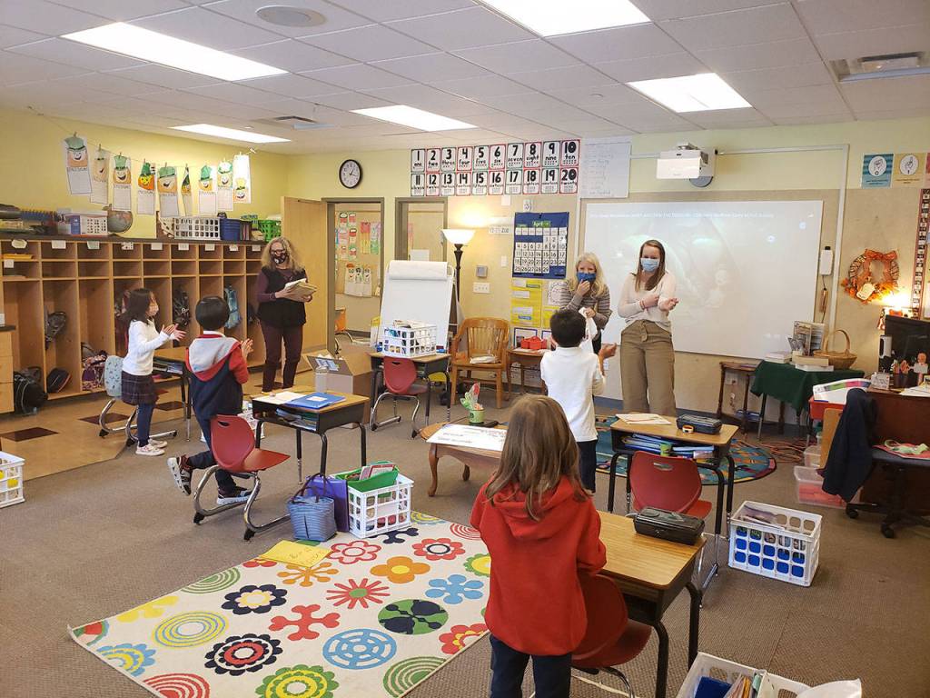 St. Cecilia began the school year online through September before working closely with the Kitsap Public Health District to open for full in-person learning by October. Cornell said she had some families who opted to stay online so she had to continue balancing both settings for students. She has 12 kids in-person and two online.