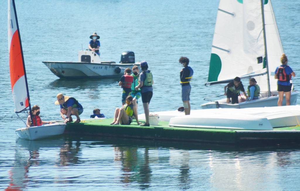 Sailors did hit the waters in the morning, but they did a drill to keep cool, learning how to capsize their boats then right them again. Those not in the boat swam to keep cool.