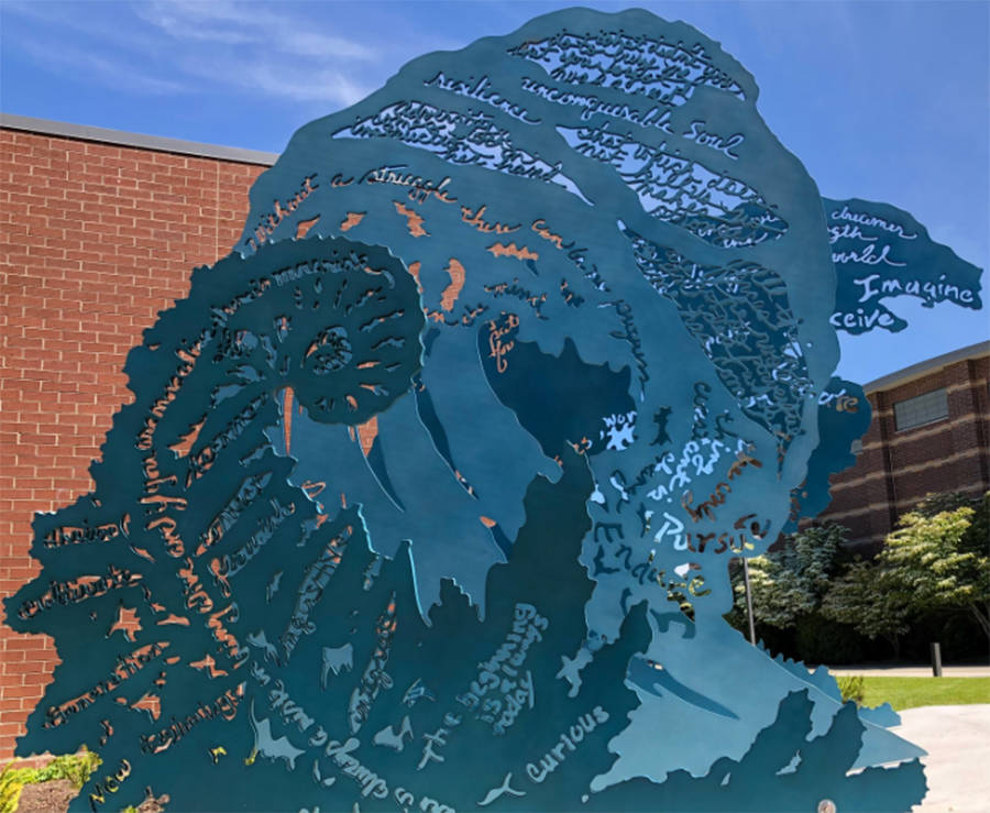 The superintendent also talked about a sculpture by Seattle-based artist Mary Coss that was installed at BHS — providing the finishing touches for the 100 Building replacement project. The art is a metaphor to the lives of students: fern frond unfurling (becoming and learning), wave building (challenge and resilience), and wave releasing (creativity and imagination).