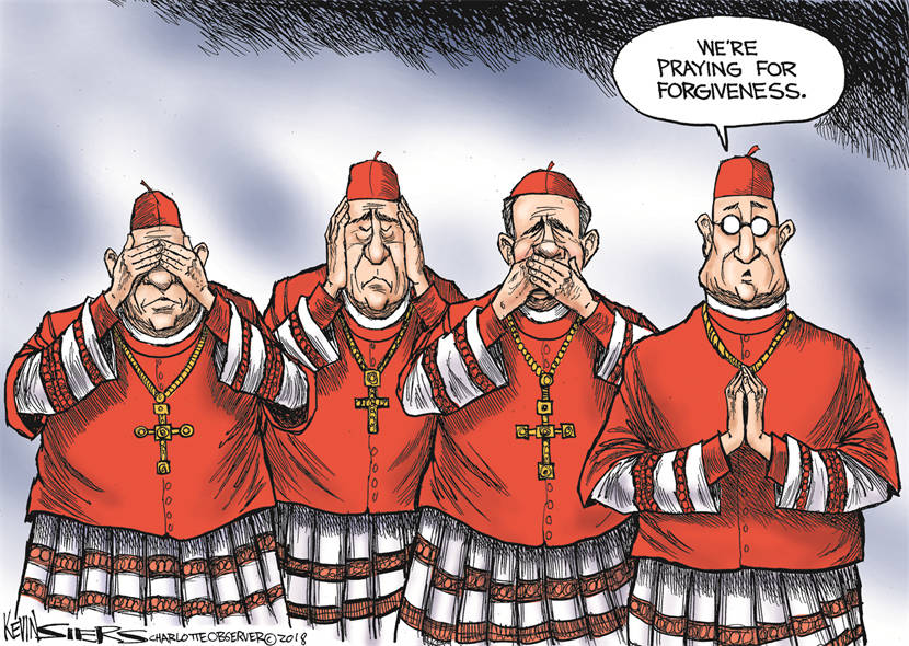 It’s well-known by now that the church’s longstanding impulse was to merely transfer abusive priests to new jobs, and to my best recollection, the bishops conference has never drafted a decree denying Holy Communion to men of the cloth who assaulted kids. (A new editorial in Christianity Today: “Bishops for years kept themselves busy moving pedophile priests from parish to parish, diocese to diocese – all the while, presumably, allowing these priests who raped little boys and girls to receive communion.”) As I said the other day on social media, the church all too often seems to believe that life begins at conception but continues at molestation.