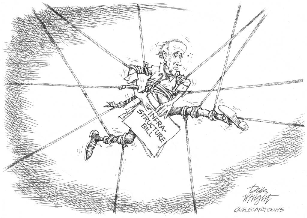 In their zeal to mollify the leftist progressive wing of their party, President Biden and the Democratic leadership in Congress have seriously jeopardized what was intended to be the administration’s signature accomplishment — a $4 trillion infrastructure program, the largest national public works project since the New Deal.