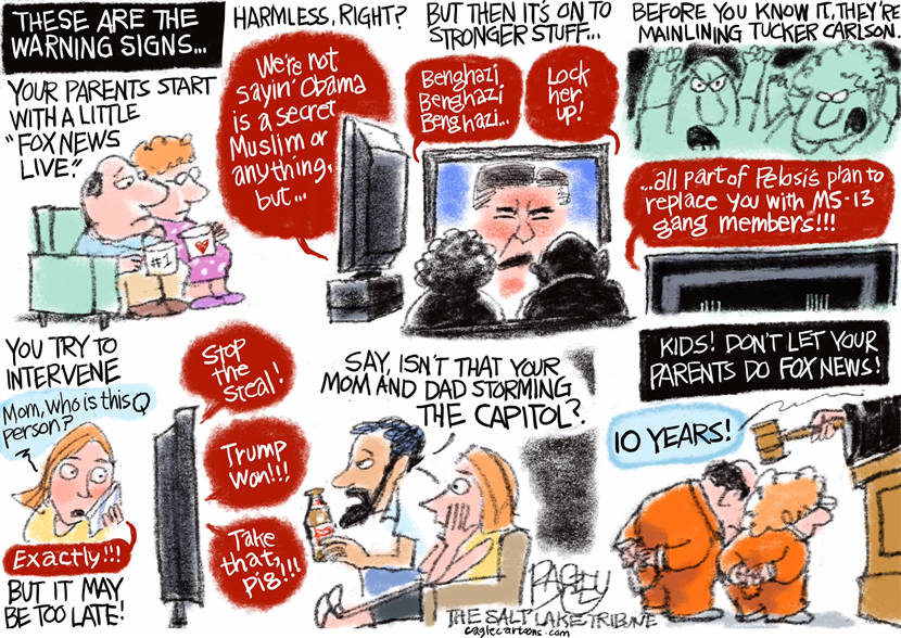 (Mutual laughter). “Right back to ya, Tucker. But just to be fair and balanced, it does look like some southern areas of Real America will be hit this weekend with record flooding and endless rain, so it might be advisable for those patriots to get out the ole umbrella and go live for awhile in a rescue shelter where unvaccinated people aren’t persecuted.”