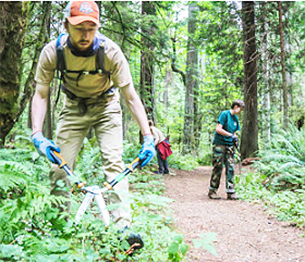 Will Gleason uses clippers to cut back vegetation near a trail. Courtesy Photos