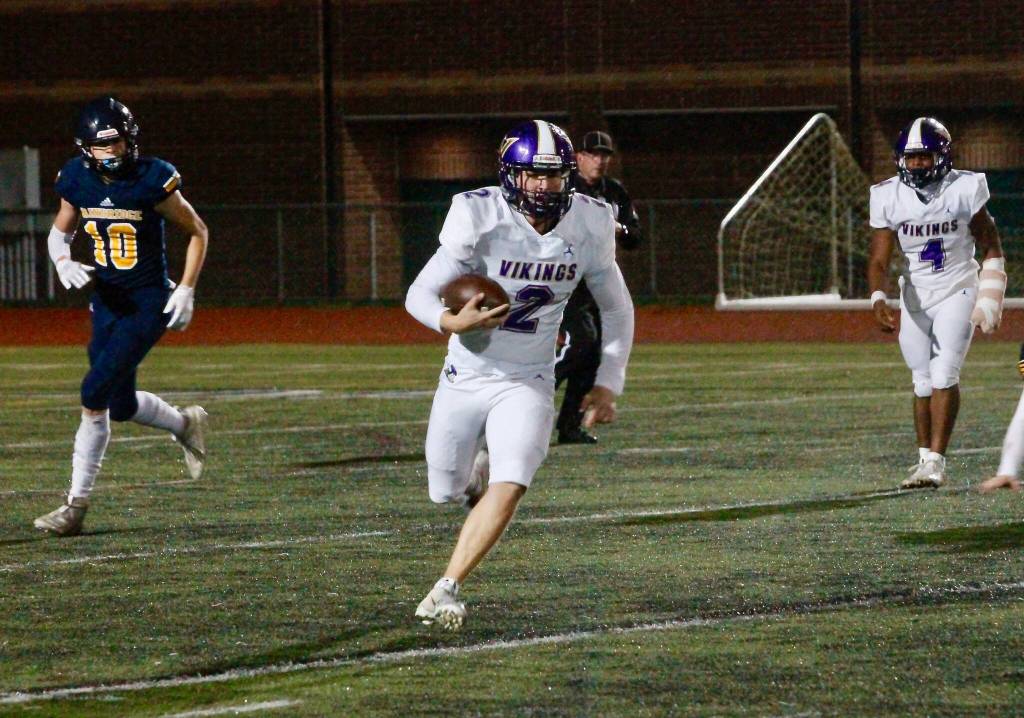 The Vikings got a taste of that Thursday night; the wind and rain grounded their normally potent aerial attack, but thanks to their all-state playmaker at quarterback, North Kitsap got their engines running in the second half and walked off with a 32-0 win over Bainbridge to move to 7-0 on the season.