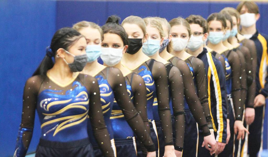 The Bainbridge High School gymnastics team lines up in the ceremony to start the meet.