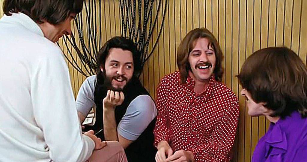 But on-camera, the fissures are opaque. Paul, long characterized during this time as overbearing, bossy, and interested only in advancing his own songs, instead is seen as playing the role of parental facilitator, gently prodding the boys to “get back” on task to compose new songs, refine lyrics and get them recorded.