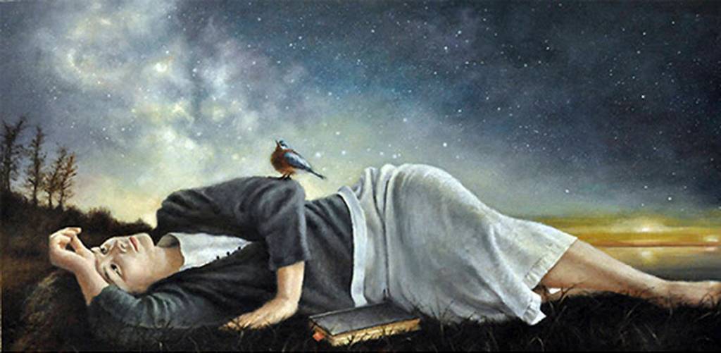One of the pieces in the show is called “Girl Laying on Grass” by Jeff Weekley. It is 15 inches by 30 inches and oil on panel.