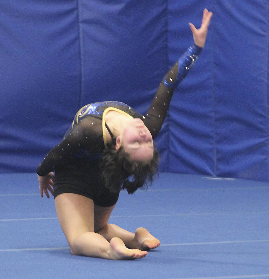 She took the uneven parallel bars with a score of 7.95 from the judge. The junior also won the floor exercise with a score of 9.25.
