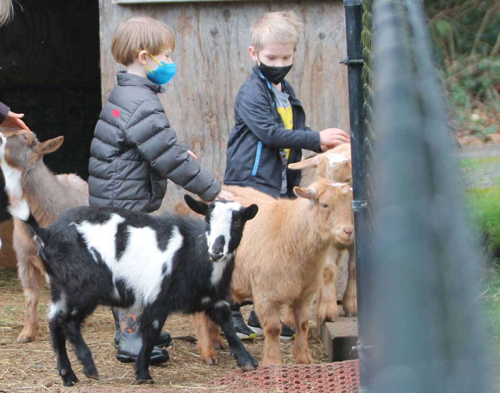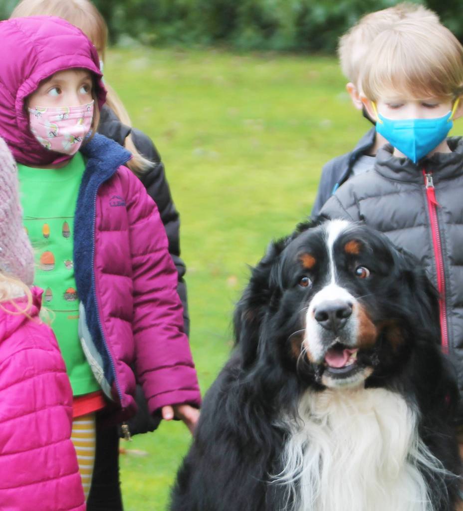 Children come from all over Bainbridge Island to go to school there. They learn about nature on the 10-acre property by going outside and exploring. They plant and harvest a garden. They learn how to swim in an indoor pool. There’s also a covered sports area, a play shed and a country barn with a built-in theater. The children interact with animals like four Nigerian goats, two lop-eared rabbits and one giant Bernese Mountain dog named Wyatt, who has become the school mascot. This year they added Mason Bees to the collection of natural critters that pollinate the native trees surrounding the property.