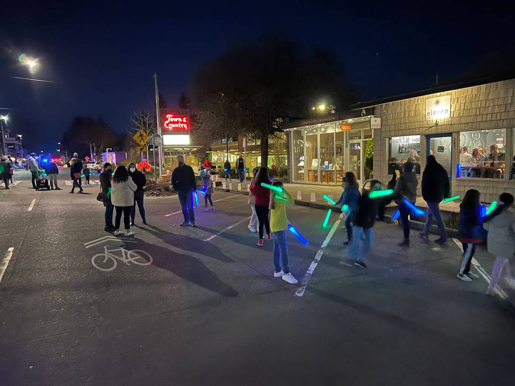 BYS partnered with the BI Downtown Association and Chamber of Commerce to plan the free luminaria walk with sponsorship from Virginia Mason Franciscan Health, which provided 1,000 light sticks that children used as lightsabers to play with in the dark.