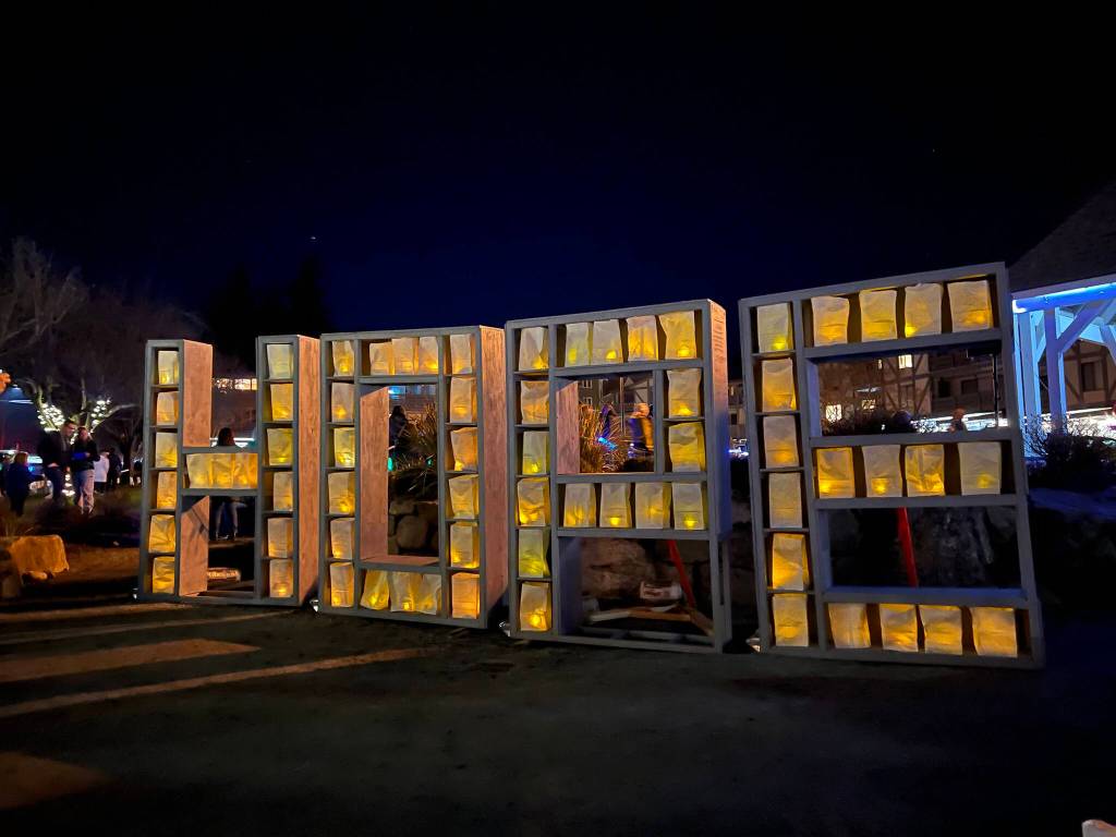 Hope Glows lit up the sidewalks of downtown as more than 2,000 bags hand-decorated by schoolchildren, residents and friends lined Winslow Way between Erickson Street and Madison Avenue for a colorful candlelight walk on a moonlit winter evening.