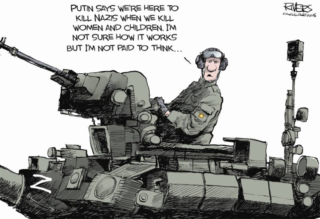 But the truth also has become collateral damage these last weeks, as Putin has twisted language beyond meaning to justify his atrocities. Russian officials and conspiracy theorists have, for instance, promoted the baseless claim that the attack on the maternity hospital in Mariupol was “staged,” USA Today reported. This week, Russian TV news producer Marina Ovsyannikova was detained and fined for interrupting a broadcast, and accurately describing Putin’s action for what it is: A war. She could be imprisoned for saying what’s obvious to the entire planet.