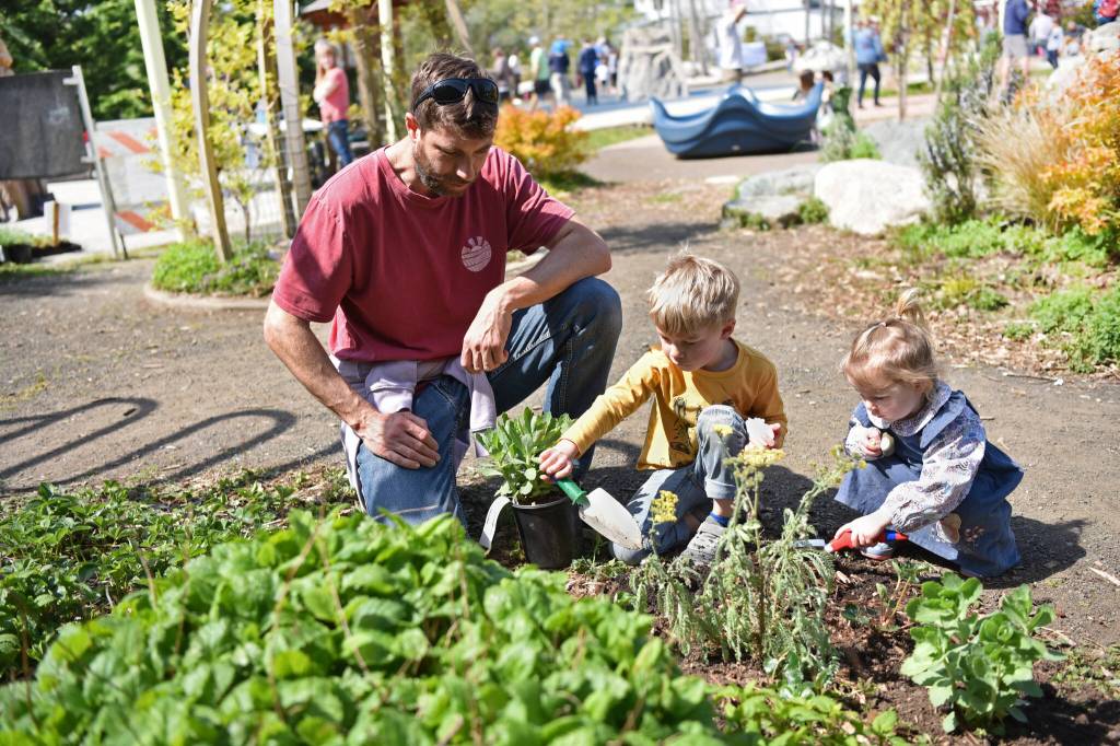 Several hundred people enjoyed blue skies and blossoms during the annual Earth Day celebration April 24 at Rotary Park. The family friendly event hosted by the Bainbridge Island Parks Foundation in partnership with Bainbridge Metro Parks celebrated the 50th anniversary to promote the health of the environment with live music, nature-themed activities for kids, information booths, local food, invasive weeds removal, and planting of hundreds of wildflowers and plants.