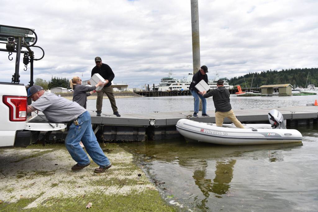 The drills ran all day and included operations at Eagle Harbor where the flotilla boat, The Otter, delivered water, and at the floating dock at Hidden Cove. “It’s a really neat floating dock. It’s inside of a bay, so it might actually survive an earthquake and a tsunami,” James said.
