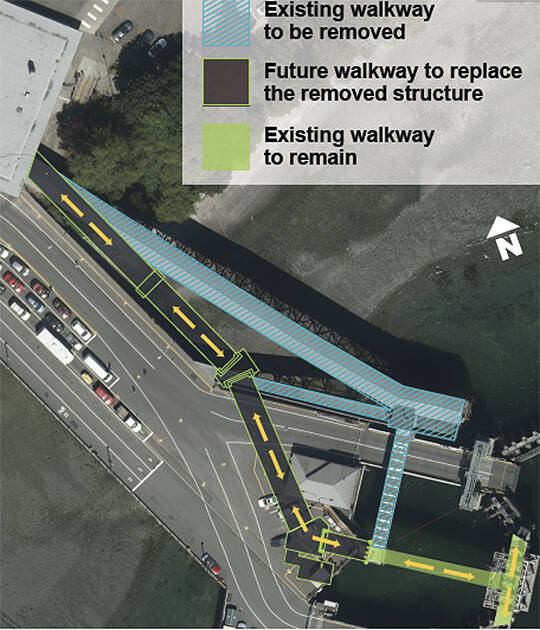 The busiest walkway in the Washington State Ferries system with 3.2 million walk-ons a year before COVID will be replaced with a safer wider, concrete and steel path built to seismic code. The project will also replace outdated mechanical and electrical parts on the loading bridge.